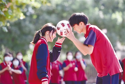 5月27日,河北省石家庄市第二十二中学高三年级学生进行“传递力量”趣味游戏,缓解学习压力。 新华社发(张晓峰 摄)