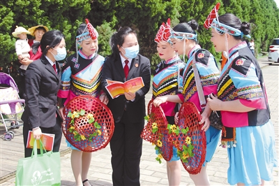 5月23日,上杭县人民法院古田法庭“青年文明号”再出发,青年干警走进古田会址景区,开展“我为团徽添光彩”行动暨“美好生活 民法典相伴”普法宣传活动,“典”缀古田景区,“典”亮群众生活。活动中,青年干警向群众普及离婚冷静期、抚养赡养、遗嘱设立、高空抛物、见义勇为免责、禁止高利放贷等重要法律条文,内容多样的宣传图文、通俗易懂的释法语言、深入浅出的现场答疑,让群众收到实用“法典大礼包”。