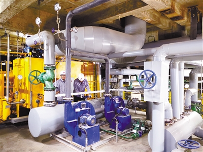 工人在检查汽轮机气封冷却器。
