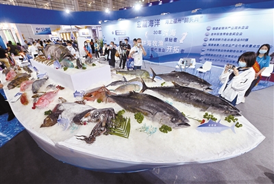 这是在渔博会上展示的海洋水产品(6月10日摄)。当日,2022海峡(福州)渔业周·中国(福州)国际渔业博览会在福州海峡国际会展中心开幕。来自全国10多个省市的300余家企业和机构参展。 新华社记者 林善传 摄