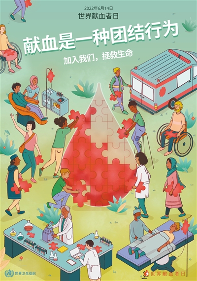 今年“世界献血日”主题是:献血是一种团结行为。加入我们,拯救生命。
