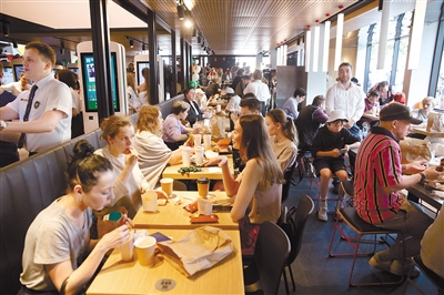 6月12日,顾客在俄罗斯首都莫斯科普希金广场的“只有美味”连锁餐厅用餐。位于莫斯科市中心普希金广场的原麦当劳餐厅12日重新开业,正式更名为“只有美味”。这里曾经是麦当劳30多年前进入俄罗斯市场后开设的首家门店。当天重新开业的共有莫斯科和莫斯科州的15家原麦当劳餐厅。 新华社记者 白雪骐 摄
