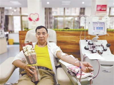 永定高陂的泥水师傅林天锦自2016年以来先后献血50次,其中48次捐献血小板,面对60周岁要告别法定献血年龄时,他又走进龙岩中心血站——