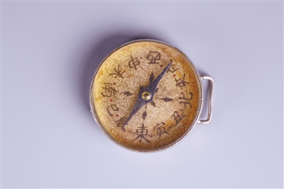 这只怀表,其实是张鼎丞在闽西三年游击战争时期使用过的指南针。指南针呈圆形,直径2.4厘米,内圈标着东、南、西、北四个方位,外圈标着子、丑、寅、卯、辰、巳、午、未、申、酉、戌、亥等十二地支名称,十分小巧,便于携带。