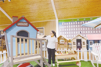 福建漳平市德诺林业有限公司位于漳平市富山工业园区,是一家专业生产儿童户外游戏用品、宠物用品、园艺用品、户外桌椅、集成材、装饰线条等木质产品企业。产品主要出口欧美等国。2021年出口额2509万美元,2022年1一5月份出口额1056万美元。图为13日工作人员为客户介绍产品。