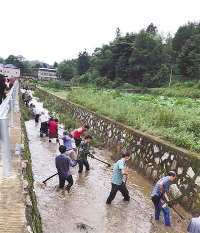6月19日,连续强降雨导致武平县武东镇川坊村出现河道淤积。该村群众自发开展河道清淤,50多位村民拿着锄头等工具积极清除疏通河道内的淤泥与障碍物,进一步提高河道行洪能力,确保安全度汛。 通讯员 陈荣香 谢建玲 摄
