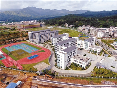 近年来,随着长汀工业园区工贸新城片区企业数量的增加,片区人口也逐年增加,为解决该片区小学升初中的就近入学问题,减轻招生压力,长汀县委、县政府科学决策兴建长汀一中初中部新城校区,项目规划用地53亩,兴建校舍建筑面积2.5万平方米,规划设计办学规模24个教学班,可容纳初中生1200人,项目总投资达6500万元,自2020年秋季开始招生以来,校园不断完善美化,成为工业新区重要的民生项目,提高了片区教育教学质量,改善了人居环境。图为6月20日新城校区航拍图。