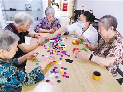 龙岩慈爱老年康养中心依托龙岩慈爱医院的医疗、康复技术团队资源,是医养结合、康养融合、智慧养老创新型的长者养护机构。中心设有茶道、怀旧电影、书画、太极、禅修、开心农场、老党员之家等文体娱乐项目,丰富老年人生活,提供高品质的老年生活环境。图为近日,老年人做手工锻炼手眼协调性。 融媒体记者 傅利昌 摄