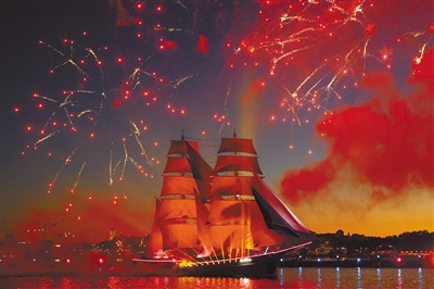 这是6月25日凌晨在俄罗斯圣彼得堡拍摄的涅瓦河上的红帆。6月24日晚至25日凌晨,俄罗斯圣彼得堡欢庆一年一度的“红帆节”,庆祝中学生们毕业,走向人生新的起点。“红帆节”得名于俄罗斯作家格林创作于1923年的作品《红帆》。《红帆》讲述了一个富有传奇色彩的浪漫爱情故事,鼓励人们对生活充满希望,用自己的双手以及真诚和信念去创造奇迹。