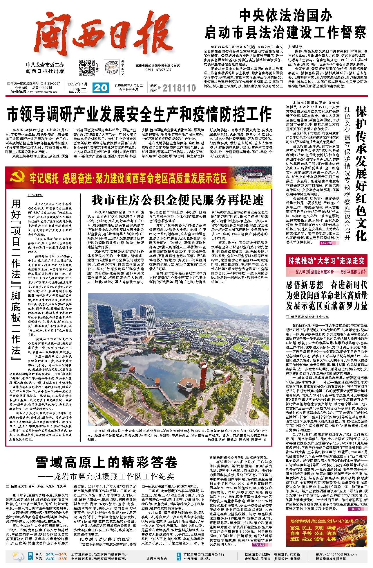 本报讯(融媒体记者 王尚华)7月19日,市委书记余红胜、市长胡盛到上杭县蛟洋工业区调研产业发展和安全生产工作,到市疫情防控应急指挥部检查疫情防控工作并看望慰问工作人员。市领导黄立峰、陈厦生、修洪分别参加活动。