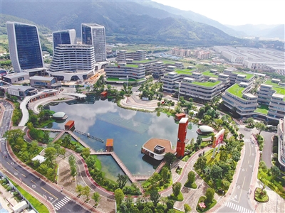 未来城·科创园位于龙岩中心城区城北片区,项目规划用地面积约307亩,总建筑面积约31万平方米,总投资12亿元。经过两年多的建设,景观设施、标准化厂房、商业街、中央商务区、写字楼等基本建成。图为日前航拍的气势恢宏的科创园。 融媒体记者 傅长盛 通讯员 温连光 摄