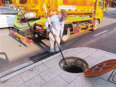 连日来,上杭县临江镇持续抓好辖区窨井盖、地下管网排查整治工作,为群众营造安全的生活环境。图为专业技术人员在为管网清理淤泥。
