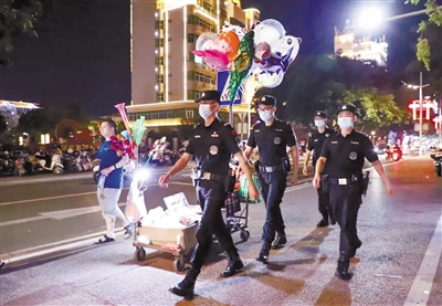 上杭公安民警在街上巡逻。通讯员 杭公 摄