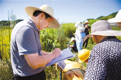 8月10日,在“一季杂交稻+再生稻”生产模式宁乡示范基地头季稻测产验收现场,工作人员记录稻谷重量。当日,湖南省农学会组织专家对位于湖南省长沙市宁乡市流沙河镇的“一季杂交稻+再生稻”生产模式宁乡示范基地的头季稻进行测产验收,经专家组现场测算,该基地头季稻亩产765.7公斤。据了解,再生稻采用“一季中稻留蓄再生”种植模式,可以一次播种两季收获,备受光温资源“两季不够一季有余”地区的农民关注。发展再生稻对提高水稻总产,保障粮食安全具有重要意义。 新华社记者 陈思汗 摄