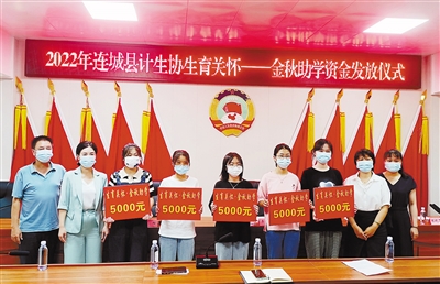 8月19日,连城县计生协会举行2022年“金秋助学”助学金发放仪式。仪式现场邀请了30名当年和往年省、市、县级金秋助学受助学生代表参加。此次金秋助学活动共为83名品学兼优、家庭困难的计生二女户、独女户女大学生发放了19.6万元助学金。 通讯员 周宗胜 摄