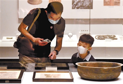 9月4日,参观者在“繁星盈天——中国百年百大考古发现展”上观看展品。日前开始,“繁星盈天——中国百年百大考古发现展”在郑州博物馆文翰街馆面向公众展出。本次展览以“百年百大考古发现”为主线,通过中国百年来100处考古发现出土的代表性文物,集中展示中国考古百年发展历程和取得的辉煌成就。 新华社记者 李安 摄