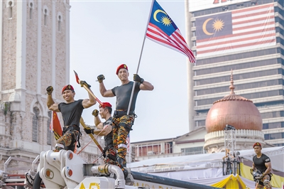 这是8月31日在马来西亚吉隆坡独立广场拍摄的马来西亚独立65周年庆典活动上的游行展示。当日,马来西亚独立65周年庆典活动在吉隆坡独立广场举行。 新华社记者 朱炜 摄