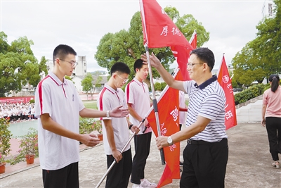 近日,长汀一中举行2023届高三年段进班仪式暨高考动员大会。该校高三全体师生、家长代表等,在庄严的国旗下感受拼搏奋进的激情时光。图为活动现场,举行班级授旗仪式,祝愿同学们为梦想扬帆起航,驶向胜利彼岸。