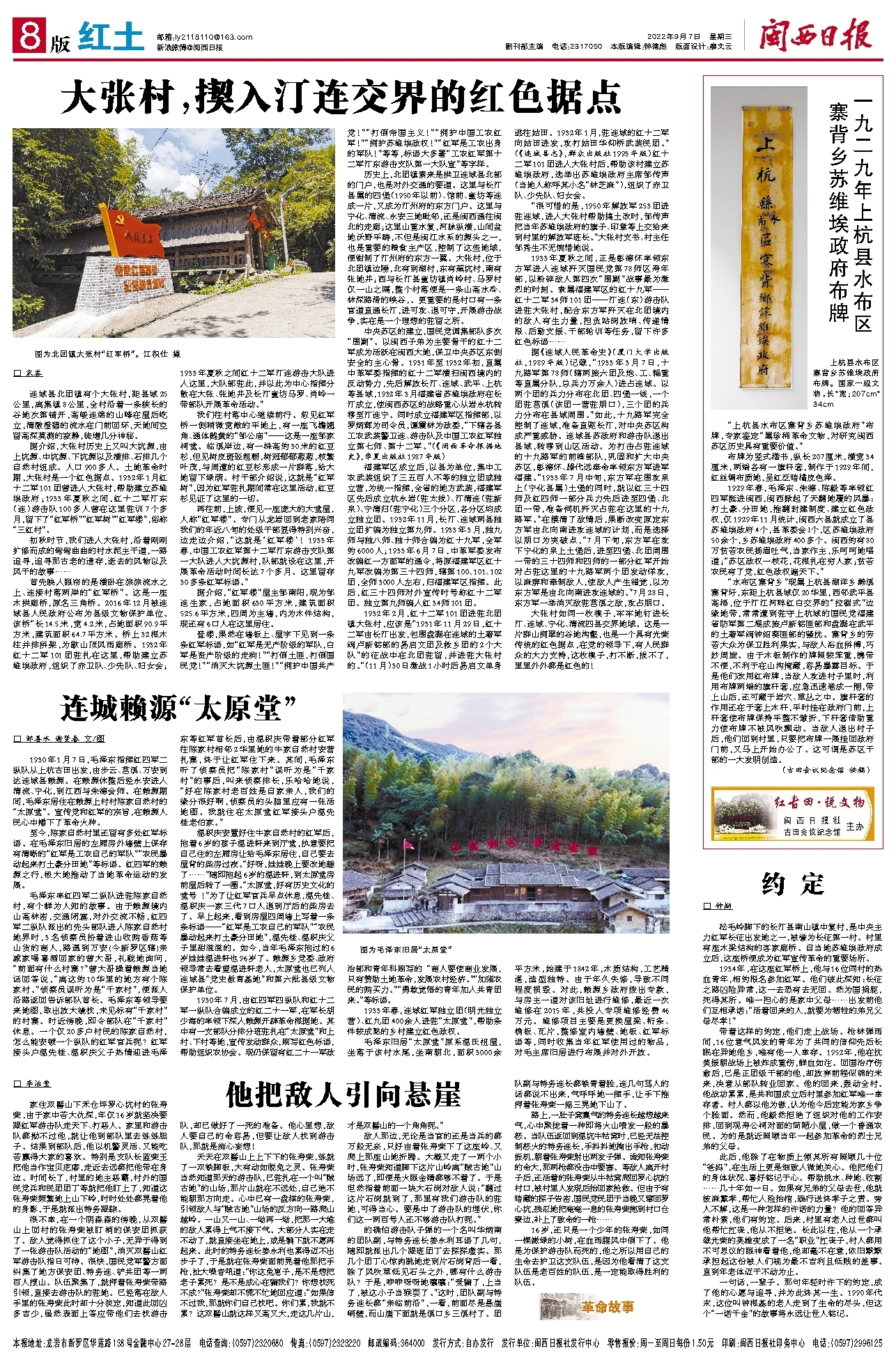 1929年春,毛泽东、朱德、陈毅等率领红四军挺进闽西,闽西掀起了天翻地覆的风暴:打土豪、分田地,推翻封建制度、建立红色政权,仅1929年11月统计,闽西六县就成立了县苏维埃政府4个,县革委会l个,区苏维埃政府50余个,乡苏维埃政府400多个。闽西约有80万贫苦农民扬眉吐气,当家作主,乐呵呵地唱道;“苏区政权一枝花,花根扎在穷人家;贫苦农民有了党,红色政权遍天下。”