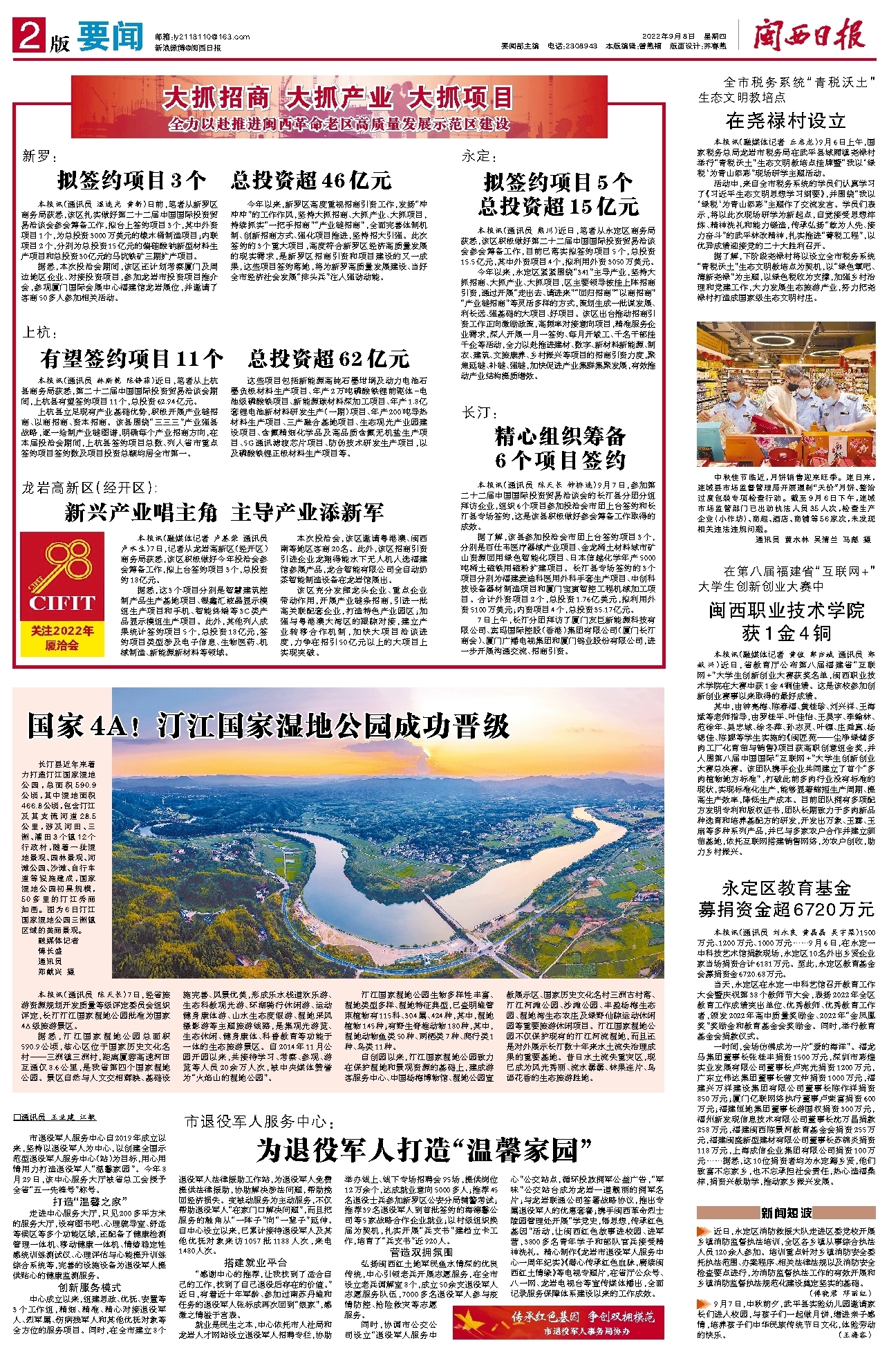 本报讯(融媒体记者 卢基荣 通讯员卢水生)7日,记者从龙岩高新区(经开区)商务局获悉,该区积极做好今年投洽会参会筹备工作,拟上台签约项目3个,总投资约18亿元。