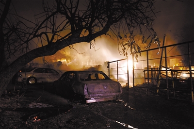这是9月6日在美国加利福尼亚州里弗赛德县拍摄的被山火烧毁的汽车。美国加利福尼亚州里弗赛德县5日发生的一处山火快速蔓延,目前已导致2人死亡。 新华社 发