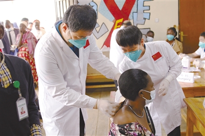 9月7日,在卢旺达首都基加利市加汉佳卫生院,中国第22批援卢旺达医疗队成员为当地患者诊疗。中国第22批援卢旺达医疗队6日至8日在位于卢首都基加利的加汉佳卫生院开展主题为“援非真情,健康相伴”的义诊活动。 新华社发(黄万晴 摄)