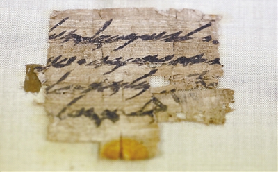 这是9月7日在耶路撒冷拍摄的记录古希伯来语信息的莎草纸信件碎片。以色列文物局7日发表声明说,该局已从一名美国公民手里获得一份记录古希伯来语信息的莎草纸信件碎片。这一珍贵文物约有2600年历史。 新华社发(吉尔·科恩·马根摄)