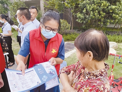 为帮助居民更好地增强网络安全意识,提高网络安全防护技能,近日,新罗区曹溪街道莲南社区新时代文明实践站开展网络安全宣传志愿服务活动。此次活动增强了居民的网络安全意识,认识到自身隐私防范的重要性。图为,社区志愿者通过宣传资料向居民讲解如何预防网络、电信诈骗,防止个人信息泄露等。