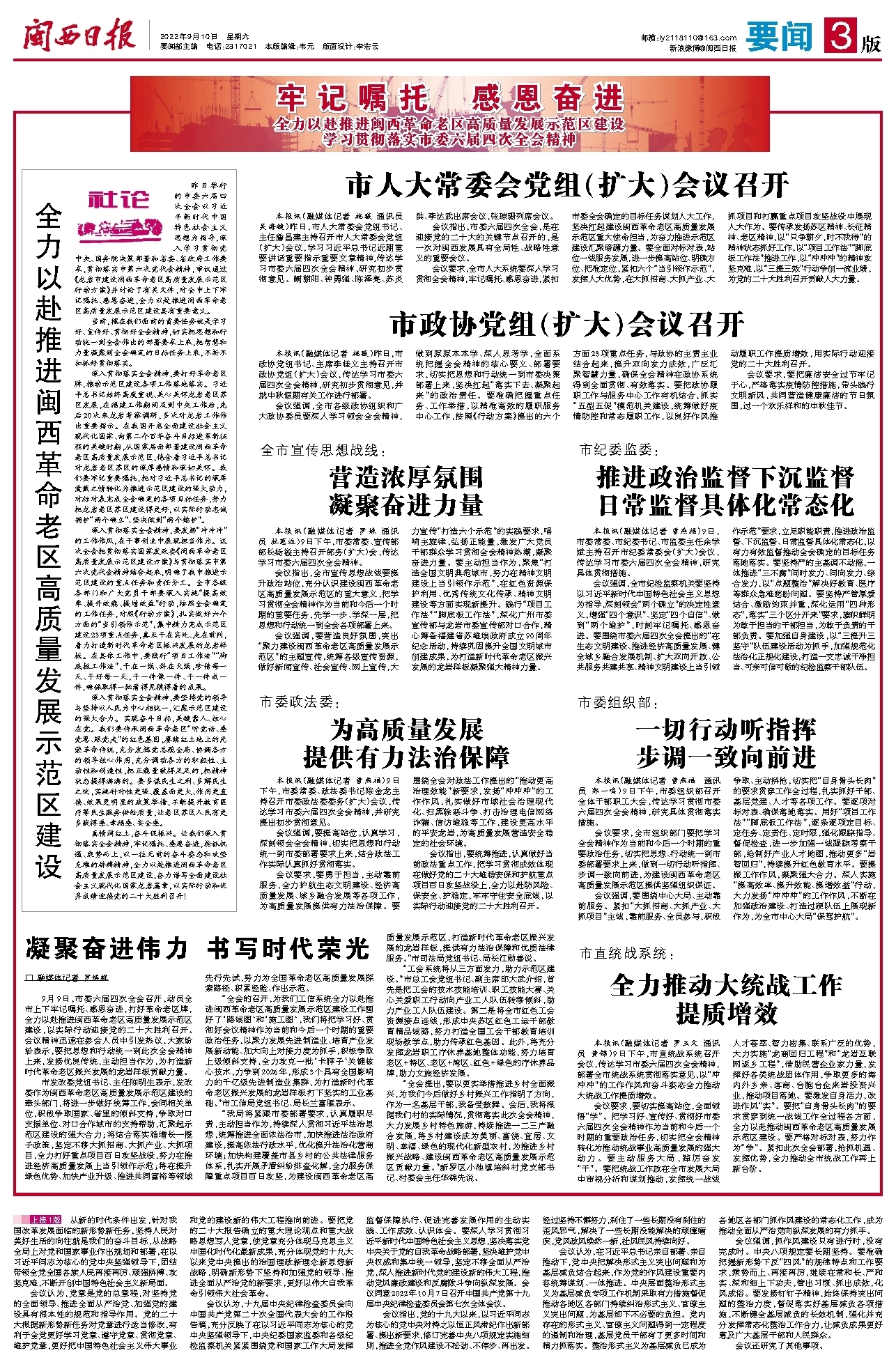 全力以赴推进闽西革命老区高质量发展示范区建设