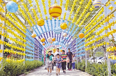九月十一日,游客在山东省烟台市芝罘区春田里休闲农场观光游玩。 新华社发(孙文潭 摄)