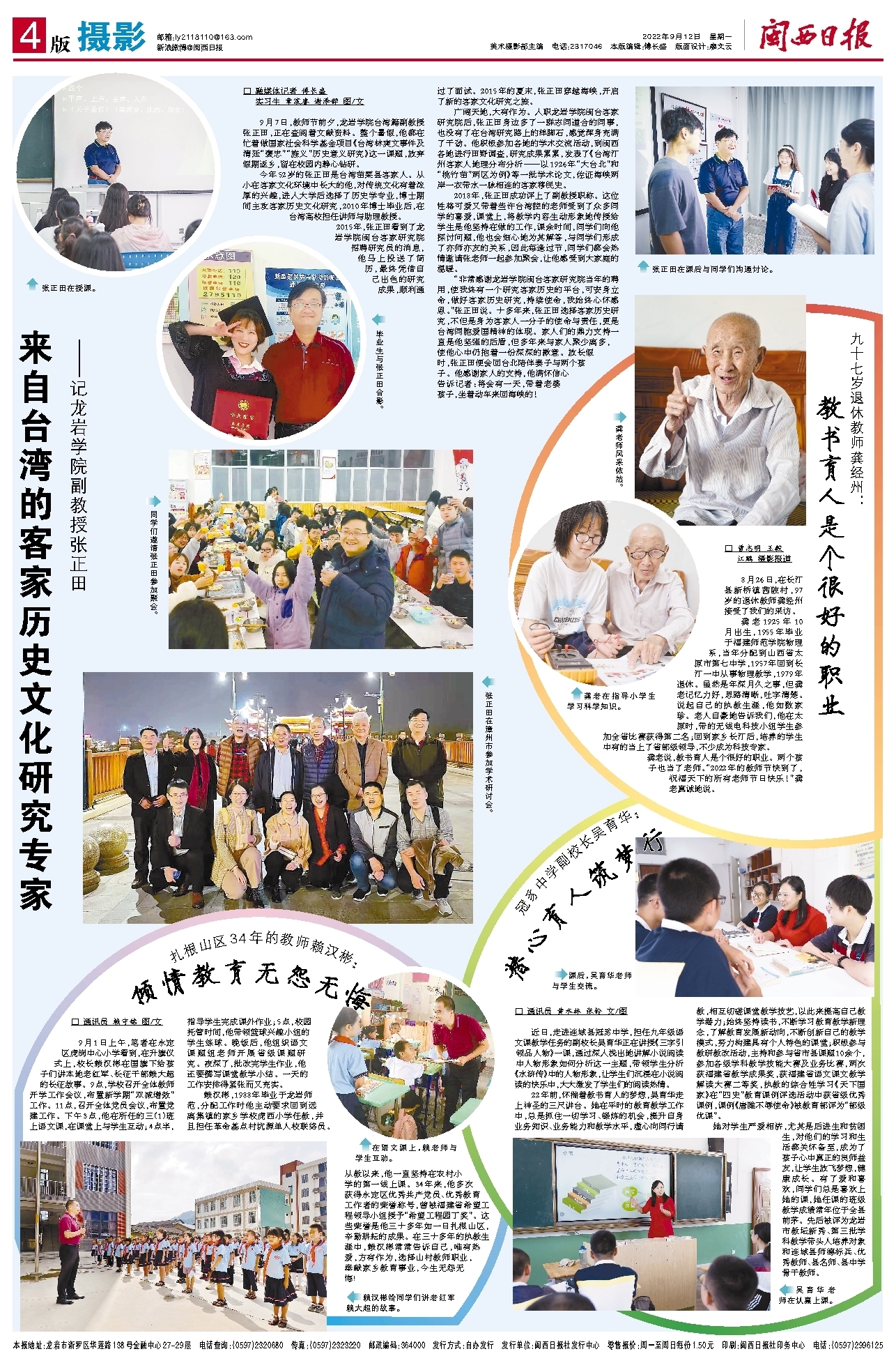 广阔天地,大有作为。入职龙岩学院闽台客家研究院后,张正田身边多了一群志同道合的同事,也没有了在台湾研究路上的绊脚石,感觉浑身充满了干劲。他积极参加各地的学术交流活动,到闽西各地进行田野调查,研究成果累累,发表了《台湾汀州客家人地理分布分析——以1926年“大台北”和“桃竹苗”两区为例》等一批学术论文,佐证海峡两岸一衣带水一脉相连的客家移民史。