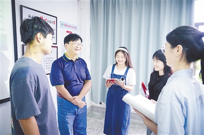 张正田在课后与同学们沟通讨论。