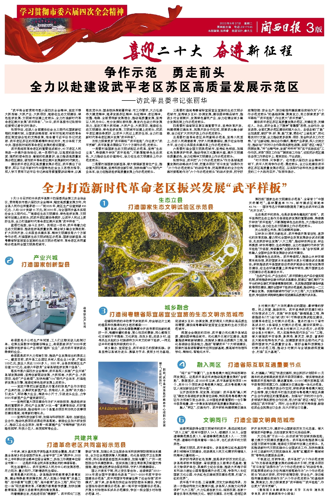 争作示范 勇走前头 全力以赴建设武平老区苏区高质量发展示范区