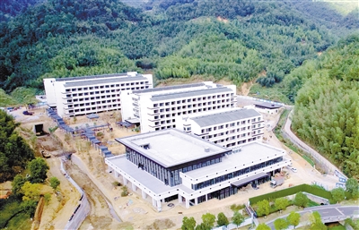 位于上杭县古田镇八甲村的红古田教育培训基地项目是2022年省重点项目、市百日攻坚项目,项目总投资22808万元,规划用地面积约49亩。目前各栋楼主体工程已封顶,正在进行室内墙面粉刷、吊顶安装等内装工程,以及乔灌木种植、透水砖铺设等室外工程。图为近日航拍的项目建设现场。