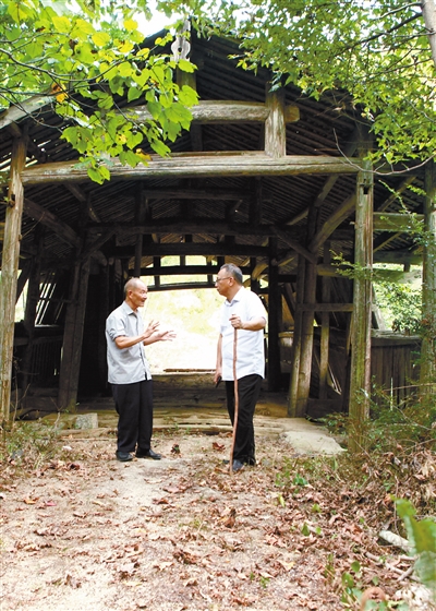 双溪桥上老人讲述革命故事。