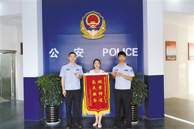 群众送锦旗感谢城关派出所民警帮助找回被盗财物。