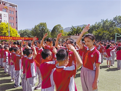 近日,全市各少先队组织纷纷开展纪念中国少年先锋队建队73周年主题队日活动,激发新队员光荣感、归属感、使命感,时刻准备着为担当民族复兴大任而奋斗。图为龙岩市师范附属第二小学主题队日活动现场,老队员为新队员们佩戴红领巾。