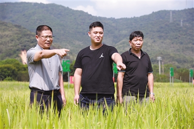 “早稻丰收了,再生稻的收成也不能忽视,除了控制好灌溉水量和定期施肥,还得及时做好除草工作。”近日,雁石镇人大代表、雁石镇厦中村党支部书记兼村委会主任袁涛涛在示范基地俯身查看再生稻长势,村民们在他的组织下,正在田间忙碌工作。