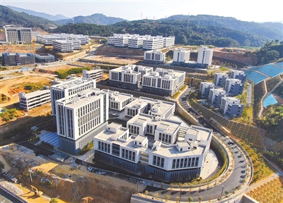 位于龙岩会展中心旁的“三创园”,是新罗区未来城重点项目之一,总投资20亿元,将建成集科研院所、创客空间、孵化器、企业加速器等功能为一体的创新创造创业基地。目前项目主体基本建成,正进行标准厂房、企业加速器、科创商务中心收尾及配套工程施工,预计年底投入使用。图为28日拍摄的三创园。