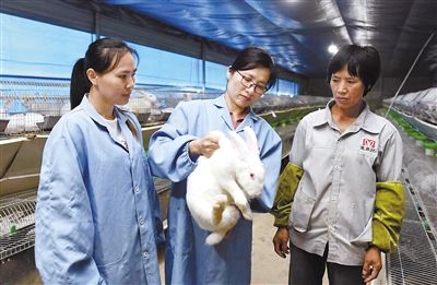 15年来,合作社采用“合作社+公司+基地+农户”的经营模式,为贫困户提供兔笼、种兔,并安装好配送到家;提供技术培训、手把手教他们养殖方法,长期通过微信、电话进行技术指导,并对农户生产出的商品兔进行保价回购,解决了贫困户养殖技术和销售难等问题。此举带动了1000多户农户,安排农户就业700余人,安置帮扶残疾人家庭43户、贫困户305户。