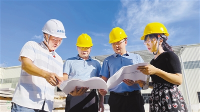 永定区党员干部在项目现场开展协调工作。 融媒体记者 郭亦斌 通讯员 熊川 摄