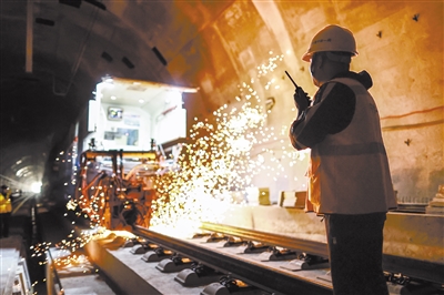 11月11日,中铁一局员工在贵南高铁贵州独山段一条隧道内指挥焊轨机施工。截至当日,贵南高铁贵州段正线铺轨已完成近200公里,超过388公里正线铺轨任务的一半,为全线铺轨完成和按期开通运营奠定了坚实基础。贵南高铁连接贵州贵阳和广西南宁,是我国“八纵八横”高速铁路网包海通道的组成部分,设计时速350公里。