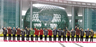 2001年10月21日,亚太经合组织第九次领导人非正式会议在上海举行。这是江泽民同志与参会的经济体领导人合影。