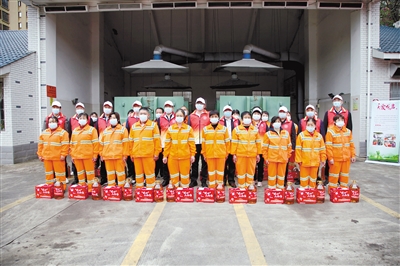 图为第四组为环卫工人送上“暖心大礼包”。