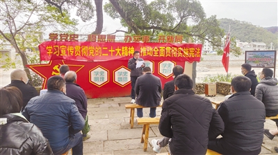 12月5日,连城县新泉镇在北村大榕树下开展以“学习贯彻党的二十大精神 推动全面贯彻实施宪法”为主题的以案释法宣传活动。新泉司法所所长江长华为在场群众讲解了《宪法》及《龙岩市红色文化遗存保护条例》相关法律法规知识。针对农村群众关心关切的征地拆迁、土地流转、婚姻家庭等常见法律问题进行现场解答,引导群众尊法、学法、守法、用法,提高自觉保护好新泉当地丰富的红色文化遗存的意识。