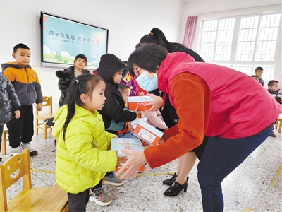 近日,市妇联开展“闽西敲敲姐 把爱带回家”关爱留守困境儿童巾帼志愿服务行动,在连城县姑田镇中心幼儿园,巾帼志愿者们为24名留守困境幼儿送上暖冬童鞋。