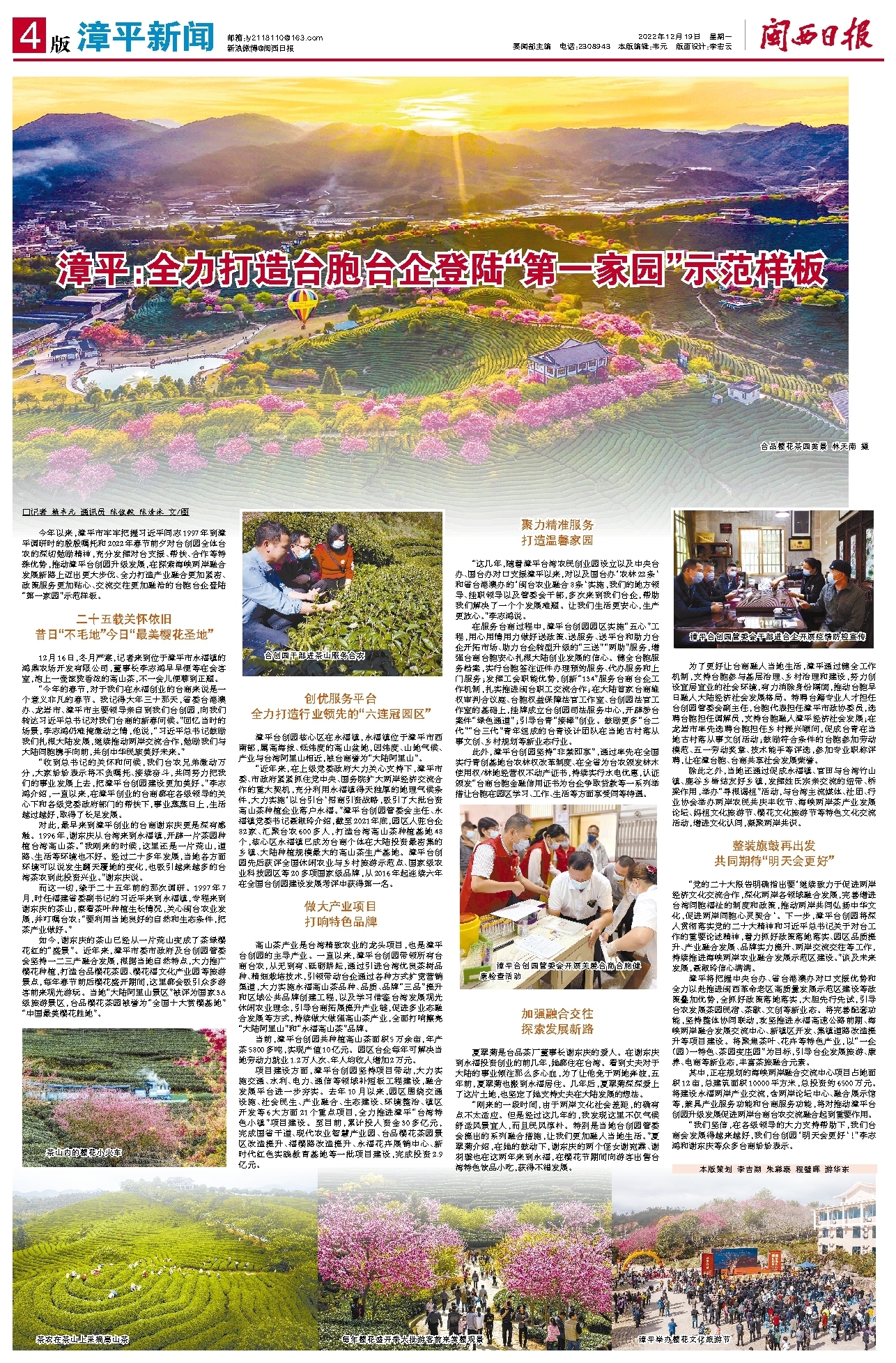 漳平:全力打造台胞台企登陆“第一家园”示范样板