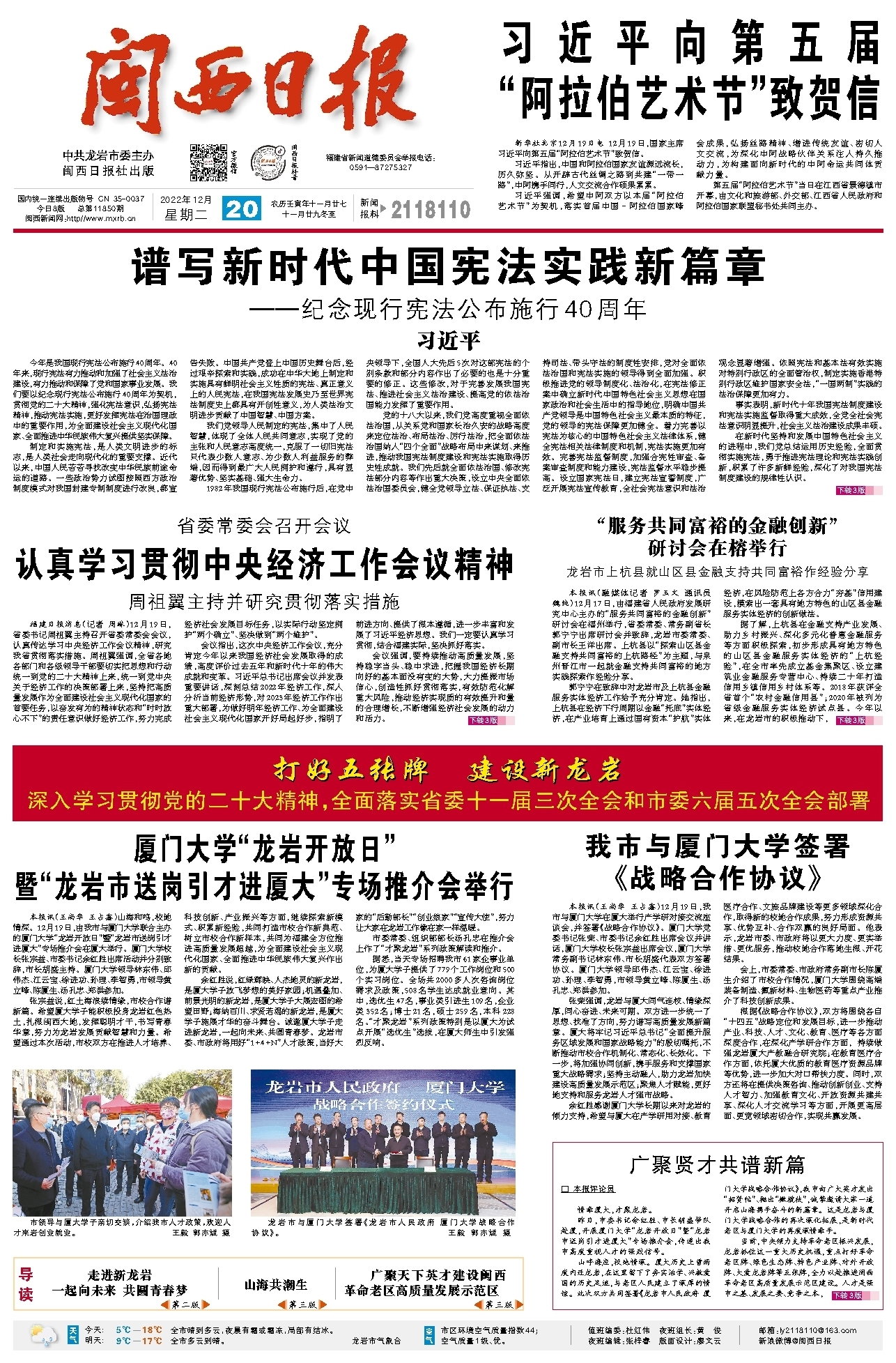 根据《战略合作协议》,双方将围绕各自“十四五”战略定位和发展目标,进一步推动产业、科技、人才、文化、教育、医疗等各方面深度合作,在深化产学研合作方面, 持续做强龙岩厦大产教融合研究院;在教育医疗合作方面,依托厦大优质的教育医疗资源品牌等优势,进一步加大对口帮扶力度。同时,双方还将在提供决策咨询、推动创新创业、支持人才智力、加强教育文化、开放资源共建共享、深化人才交流学习等方面,开展更高层面、更宽领域密切合作,实现共赢发展。