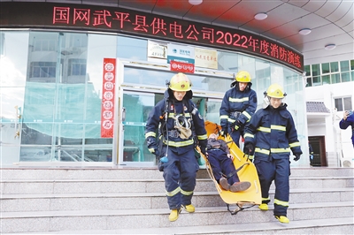 近日,武平供电公司开展消防演练,进一步强化员工消防安全意识,提高员工防火救灾的实战技能,防患于未然,为日常生产工作奠定坚实的安全基础。图为消防演练现场。