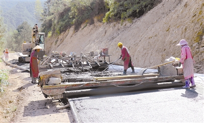 近日,在长汀县馆前镇义家村至童坊镇龙坊村路段,工程施工人员正在铺水泥路面。据悉该路涉及两个乡镇,全程4.1公里,总投资400余万元,主要工程是弯道取直和路面加宽到6.5米,工程力争年底完成。